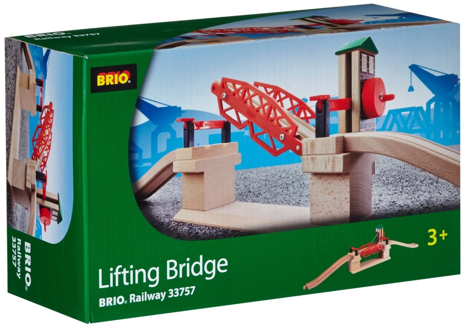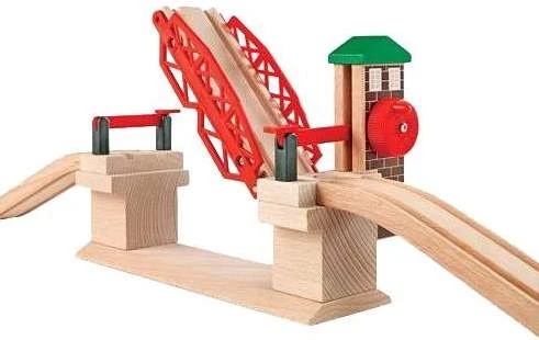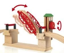 Είναι ώρα να περάσει το πλοίο! Ξεκίνα να περιστρέφεις τη λαβή για να σηκώσεις τη γέφυρα και χαμήλωσε χειροκίνητα τις μπάρες εισόδου. Περιλαμβάνει δύο ράγες με κλίση για εύκολη σύνδεση με κάθε σιδηροδρομικό σετ.