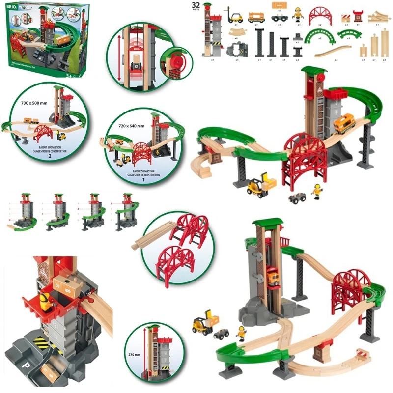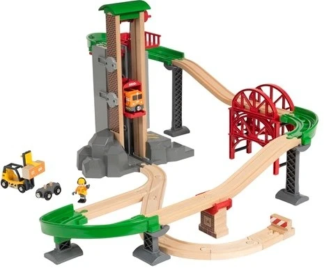 Ανακάλυψε πώς είναι ένα πραγματικό εργοτάξιο! Τοποθέτησε τις στοιβαζόμενες γέφυρες, τις στροφές και τις ανηφορικές ράγες στο επάνω μέρος της αποθήκης. Άσε τον ανελκυστήρα να μεταφέρει το βαγόνι μέχρι πάνω, ξεφόρτωσέ το και κοίτα το να κυλά προς τα κάτω. Το σετ προσφέρει ποικίλες επιλογές στησίματος. Εσύ αποφασίζεις τι θα δημιουργήσεις όμως μη φοβηθείς, δώσε όσο ύψος μπορείς στη δημιουργία σου!