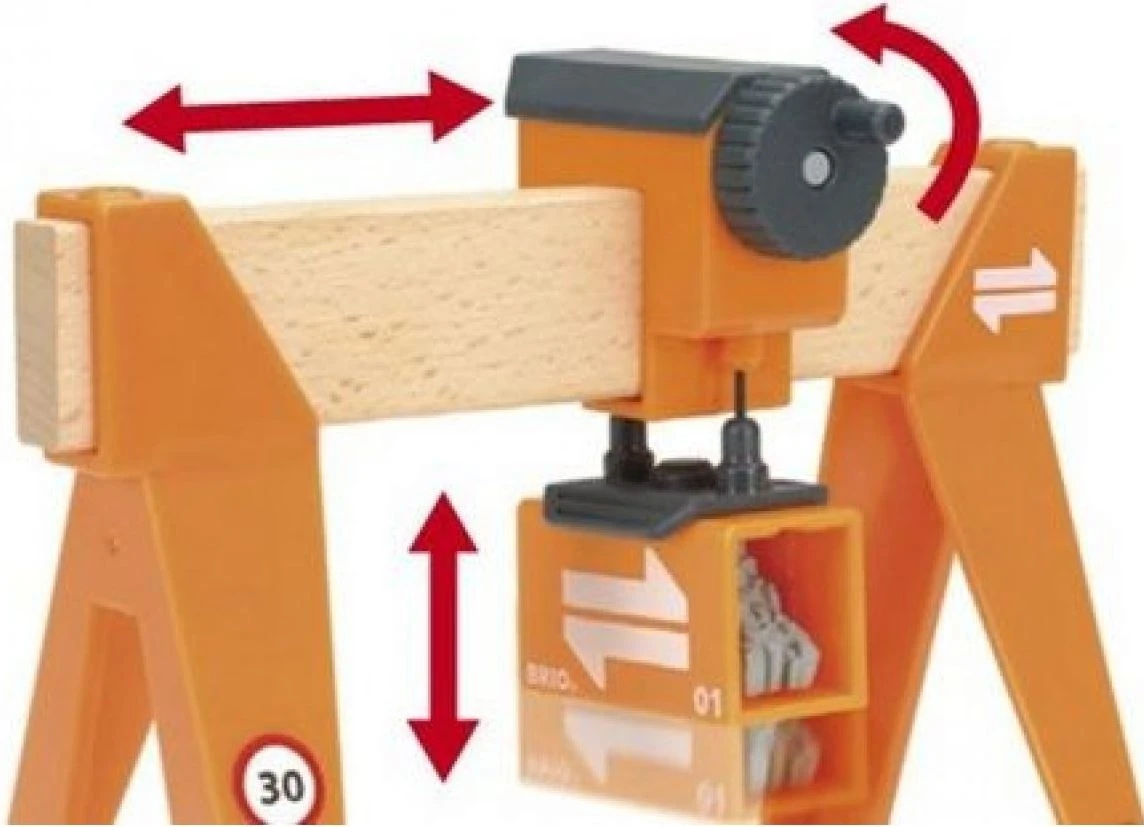 Η ανύψωση, η μεταφορά και η φόρτωση δεν ήταν ποτέ πιο συναρπαστικές! Η Γερανογέφυρα έχει έναv θάλαμο στο πάνω μέρος της, ο οποίος περνά μέσα από τη μπάρα της γέφυρας, πάνω στον οποίο τοποθετείται ο γερανός. Μετακίνησέ τον πάνω από το μαγνητικό φορτίο, μετέφερε το φορτίο και κατέβασέ το πάλι κάτω περιστρέφοντας τη λαβή. Η Γερανογέφυρα περιλαμβάνει και τροχούς έτσι ώστε να μεταφέρεται εύκολα σε κάθε σιδηροδρομικό σύνολο.