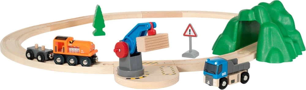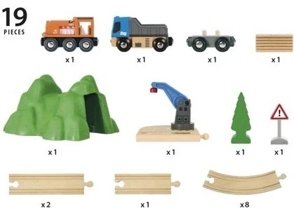 Ετοιμάσου για επιβίβαση! Δημιούργησε το δικό σου μοναδικό κόσμο της BRIO με αυτό το νέο Starter Set Μεταφόρτωσης. Περιλαμβάνει ποικίλα αξεσουάρ, όπως έναν γερανό με αρπάγη, ένα φορτηγό, μία μηχανή τρένου με αναδυόμενο περίβλημα και ένα βαγόνι με φορτίο – περιλαμβάνει ακόμη και προειδοποιητική σήμανση, ένα έλατο και ένα μικρό βουνό, για να ζήσεις την απόλυτη εμπειρία! Ανύψωσε το φορτίο από το φορτηγό με τον γερανό, γύρνα και φόρτωσέ το στο τρένο. Συνδυάζεται τέλεια με όλα τα προϊόντα του κόσμου της BRIO.