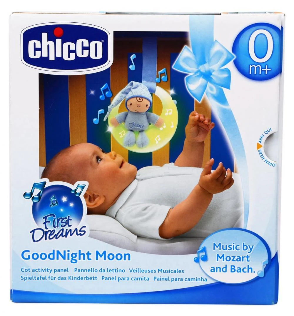 Ένα μουσικό παιχνίδι κούνιας που γλυκαίνει τα όνειρα του νεογέννητου με φωτάκια και απαλούς ήχους. Έχει ρυθμιζόμενη τιράντα για να ρυθμίζεται το ύψος τοποθέτησης του. Η μουσική του Μότσαρντ και του Μπαχ σε συνδυασμό με τις νότες πάνω στο φεγγαράκι, δημιουργούν μια μαγική ατμόσφαιρα ενώ συγχρόνως διαχέεται ένα απαλό φώς που συνοδεύει το νεογέννητο στον κόσμο των ονείρων. Το παιχνίδι περιλαμβάνει ακόμα ένα μαλακό χαρακτήρα που κοιμάται αγκαλιάζοντας το φεγγαράκι.