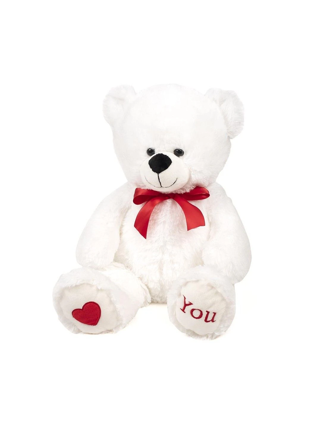Λούτρινο Αρκουδάκι Λευκό με Πολύχρωμη Καρδιά 40εκ (VL234067)