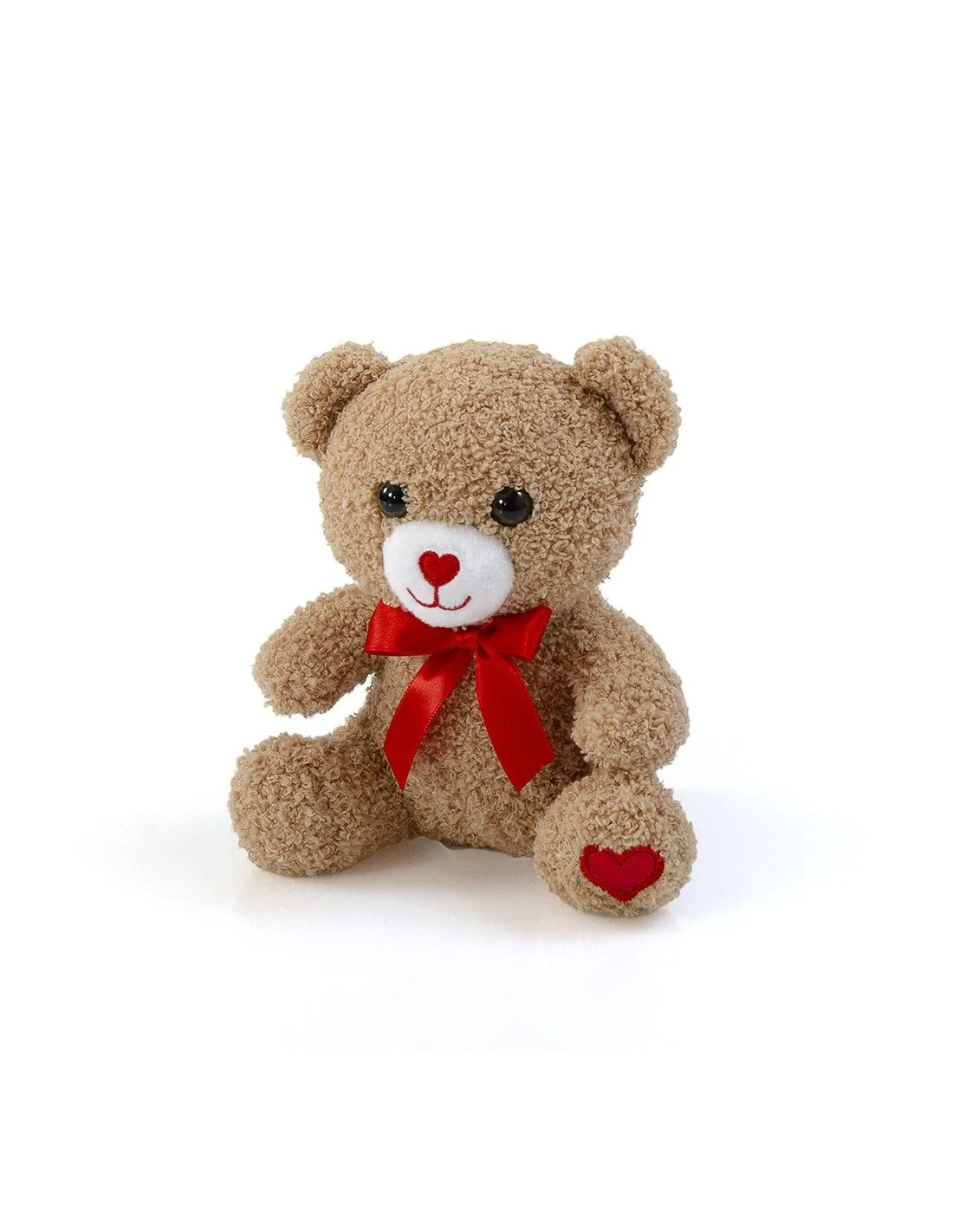 Λούτρινο Αρκουδάκι Μπεζ με Καρδιά Κόκκινη Βελούδο 25εκ (VL232564)
