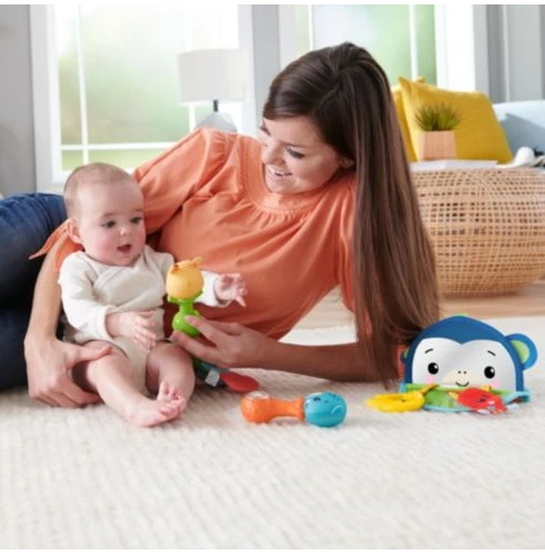 Ειδικά επιμελημένο σετ 4 παιχνιδιών για τις αισθήσεις του μωρού, καθώς και συμβουλές παιχνιδιού από ειδικούς παιδικής ανάπτυξης του Κέντρου Ερευνών της Fisher-Price.
