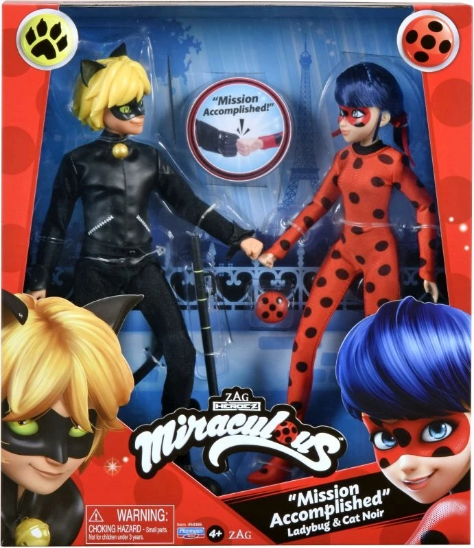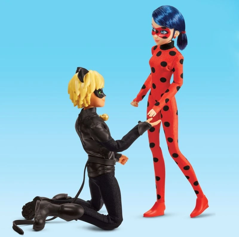 Σετ που περιέχει δύο κούκλες 27 εκ. με 13 σημεία άρθρωσης. Το ένα χέρι της κάθε κούκλας καταλήγει σε γροθιά ώστε να μπορούν να κάνουν τη χαρακτηριστική κίνηση “κόλλα το” όπως στην τηλεοπτική σειρά. Κάθε κούκλα είναι ντυμένη με τη χαρακτηριστική της στολή και έρχεται με το δικό της αξεσουάρ ώστε να μπορείτε να αναπαραστήσετε όλες τις αγαπημένες σας σκηνές από την σειρά Miraculous !