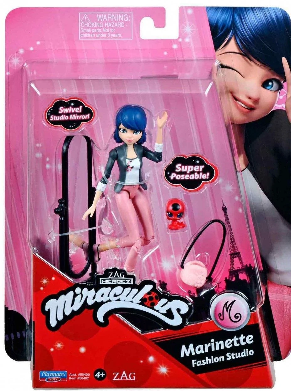 Το σετ Marinette Fashion Studio περιλαμβάνει την Μαρινέτ με την τσάντα της, το Kwami Tikki (που χωράει στην τσάντα της) και έναν καθρέφτη.