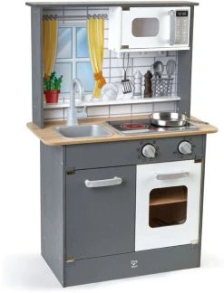 Τα παιδιά θα αγαπήσουν αυτή την ρεαλιστική κουζίνα. Ζητήστε από το παιδί σας να σας προετοιμάσει ένα “γεύμα” καθώς τα παιδιά λατρεύουν να μιμούνται τους ρόλους των μεγάλων!Οι μικροί Σεφ μπορούν να κρεμάσουν τα σύνεργα τους στην ειδική ράγα και στην συνέχεια να «μαγειρέψουν» στον φούρνο (ήχος μαγειρέματος και τηγανίσματος και φως). Ο φούρνος μικροκυμάτων διαθέτει χερούλι με ήχο. Τελειώνοντας την μαγειρική τα παιδιά μπορούν να αποθηκεύσουν τα σύνεργα τους στο ντουλάπι, να «καθαρίσουν» τον πάγκο και να «πλύνουν» τα σύνεργα τους χρησιμοποιώντας τον νιπτήρα και την βρύση! Περιλαμβάνονται μεταλλικό τηγάνι και σπάτουλα μαγειρικής.