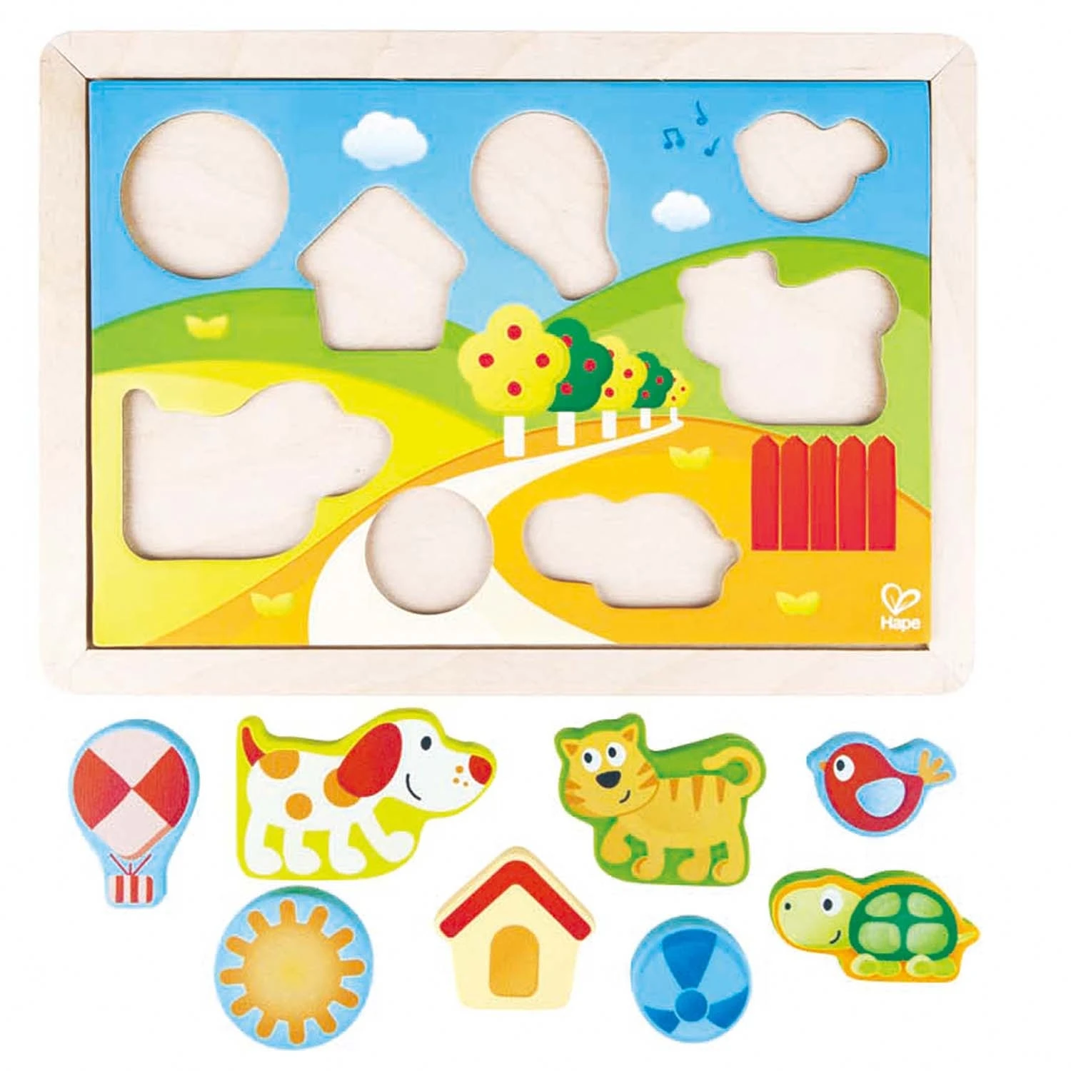 Hape Ξύλινο πολύχρωμο παζλ – Ηλιόλουστη κοιλάδα 3 σε1