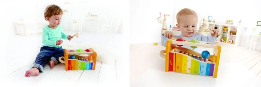 Hape Ξύλινος διαδραστικός πάγκος ξυλόφωνο με μπάλες – Melodies Pound and Tap Bench