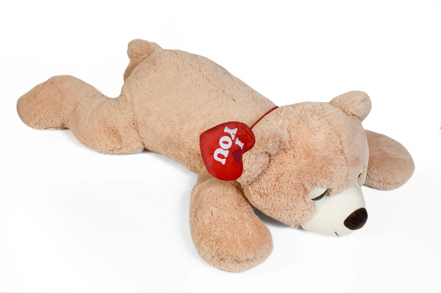 Λούτρινη Αρκούδα 100εκ Ξαπλωμένη Μπεζ Με Καρδιά