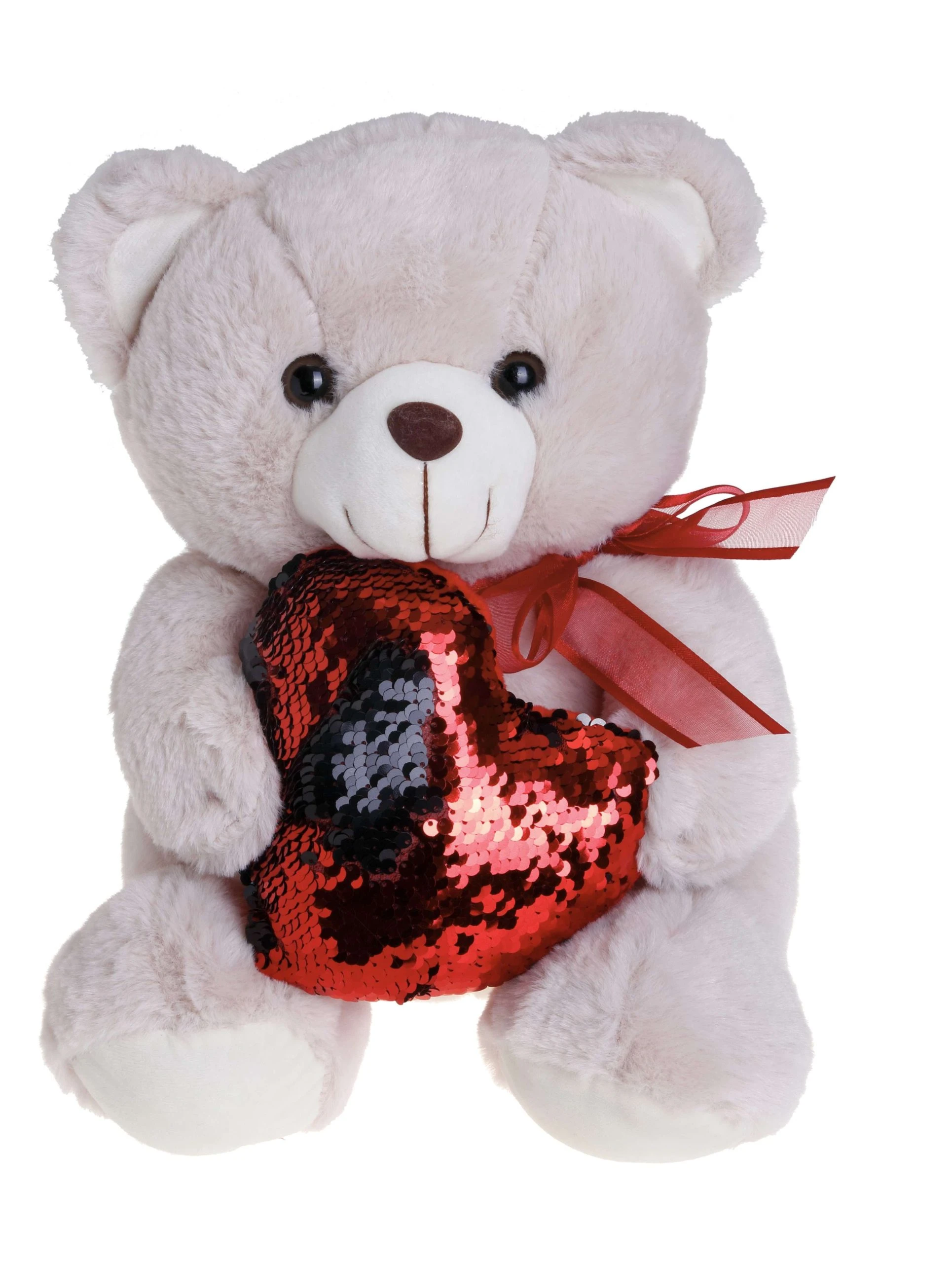 Λούτρινο Αρκουδάκι BOBO 30εκ Σομών Με Παγέτα Κόκκινη Καρδιά