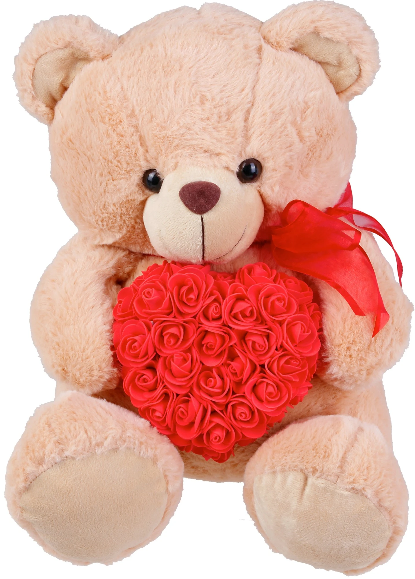 Λούτρινο Αρκουδάκι Μπεζ 40 εκ Με Καρδιά Λουλούδια