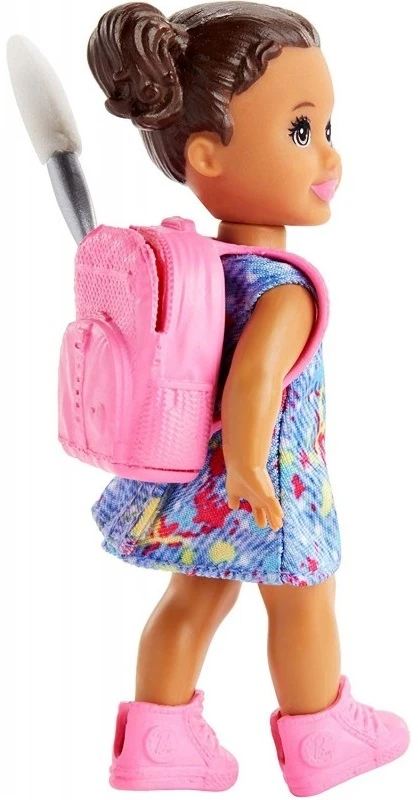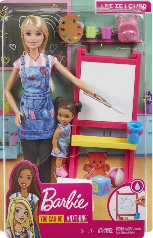 Η Barbie Δασκάλα Καλλιτεχνικών θα διδάξει την μικρή της μαθήτρια της τον τρόπο να κρατάει τα πινέλα και να ζωγραφίζει στον πίνακα. Η Barbie φοράει κολάν, μπλούζα, μια ποδιά καλλιτεχνικών, τζιν με σχέδια, με θήκες για τα πινέλα της και άσπρα παπούτσια. Η μικρή της μαθήτρια φοράει ένα πολύχρωμο φορεματάκι με ροζ παπουτσάκια και κρατάει μια μικρή, ροζ τσαντούλα πλάτης για τα καλλιτεχνικά της σύνεργα.