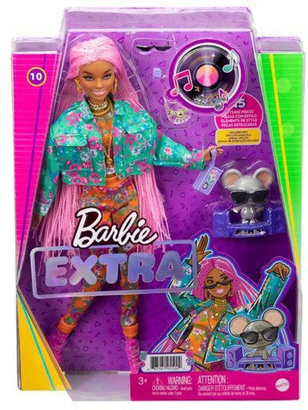 Όταν μιλάμε για μόδα, οι κούκλες Barbie Extra λατρεύουν την υπερβολή.Περιλαμβάνουν 15 κομμάτια με ρούχα και αξεσουάρ αλλά και ένα χαριτωμένο ζωάκι.Τα μαλλιά της Barbie είναι πολύ μοντέρνα με πολύ μακριές ροζ κοτσίδες.Το παιχνιδιάρικο σύνολό της αναδεικνύει την αυτοπεποίθησή της με πορτοκαλί εμπριμέ κολάν και έντονο τιρκουάζ εμπριμέ τζάκετ.Το εμπριμέ τσαντάκι, τα ροζ παπούτσια με λουράκια, τα γυαλιά ηλίου και τα χρυσαφί κοσμήματα, προσθέτουν μοναδικό στιλ και εμπνέουν πολλές ιστορίες.Το ποντικάκι της έχει και αυτό πολύ EXTRA στιλ με ένα DJ σετ και γυαλιά ηλίου!