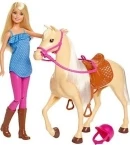 Η? Barbie είναι έτοιμη να κάνει ιππασία με το άλογό της! Το πανέμορφο άλογό της είναι εξοπλισμένο με σέλα και χαλινάρι, ώστε να μπορούν να πηγαίνουν μαζί στις περιπέτειες τους. Βάλτε την να κάτσει πάνω στη σέλα του αλόγου και ξεκινήστε την ιστορία σας. Η Barbie φοράει κατάλληλα ρούχα για ιππασία, μπότες και κράνος και έχει γόνατα που λυγίζουν για να μπορεί να καθίσει στο άλογο. Τα παιδιά θα διασκεδάσουν και θα εξερευνήσουν τον κόσμο με αυτούς τους δύο φίλους, γιατί όταν ένα παιδί παίζει με την Barbie, φαντάζεται όλα όσα μπορεί να γίνει όταν μεγαλώσει! Περιλαμβάνει κούκλα Barbie με ρούχα, αξεσουάρ και κράνος και άλογο με αποσπώμενο χαλινάρι και σέλα.