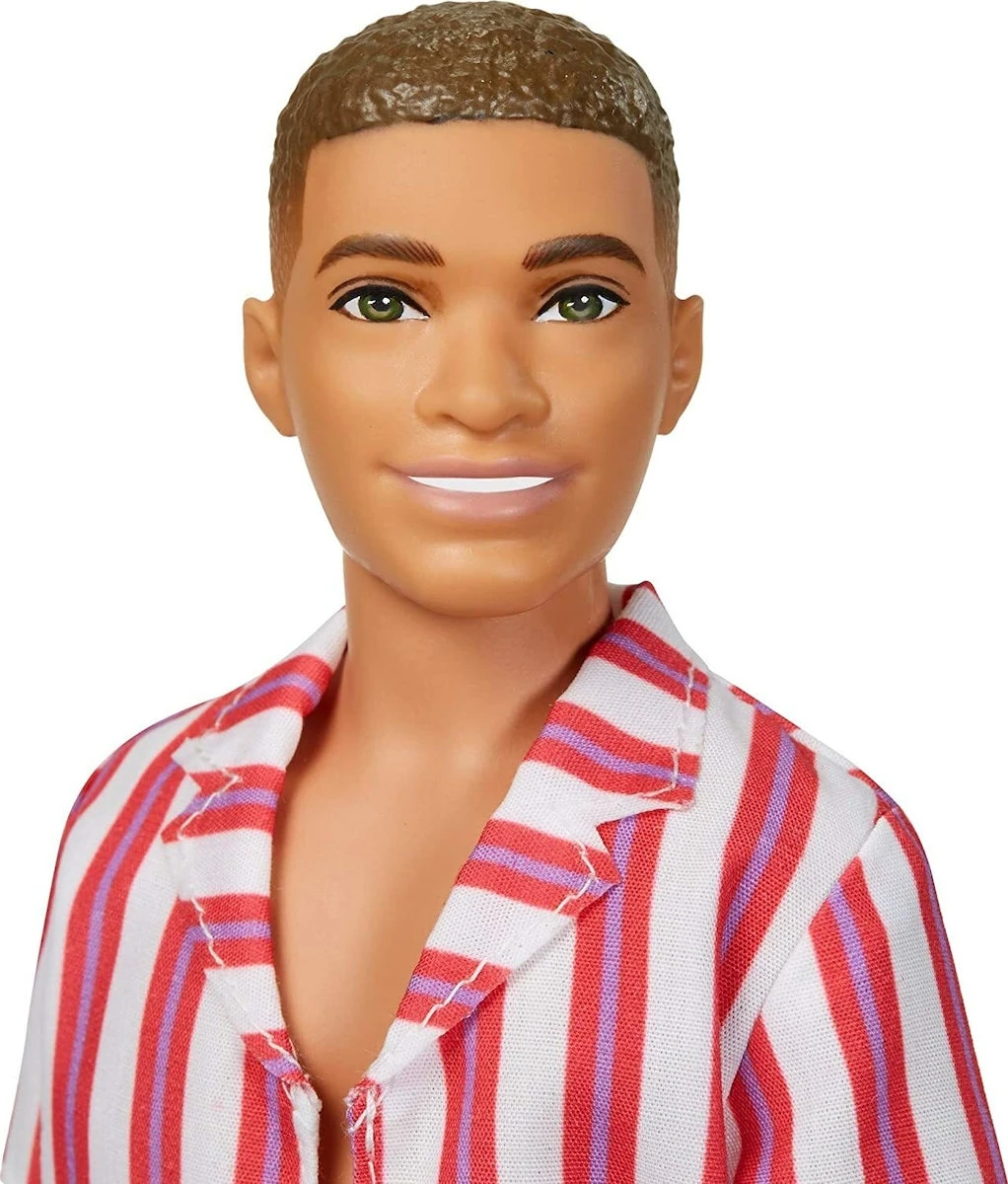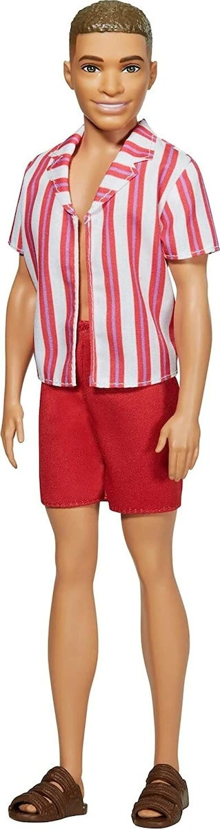 Ο Ken Doll γιορτάζει την 60ή επέτειό του με στυλ, από το παρελθόν. Αυτή η ρετρό εμφάνιση παραλίας αντιπροσωπεύει ένα από τα πιο εμβληματικά ρούχα της – το 1961 Original Ken Doll – – – ανανεώθηκε με μια μοντέρνα πινελιά. Η κούκλα Ken φοράει λευκό/κόκκινο ριγέ πουκάμισο και ένα κόκκινο μαγιό. Τα καφέ σανδάλια είναι ιδανικά για να μπείτε στις παραλίες και στην πισίνα.