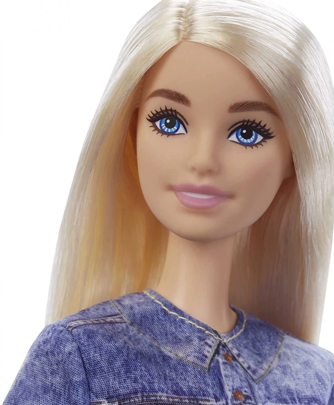 Barbie ® «Malibu» Η κούκλα Roberts έρχεται ντυμένη με ένα μοντέρνο μπουφάν εμπνευσμένο από τζιν και φούστα με βολάν με ένα αστέρι.