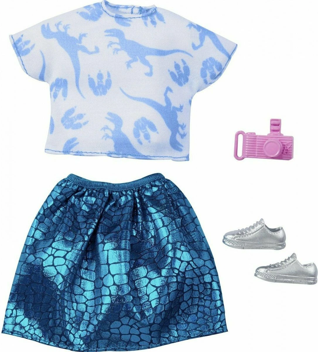 Barbie Μοδάτα Σύνολα- Διάσημες Μόδες- Jurassic World Μπλούζα με Ιριδίζον Φούστα