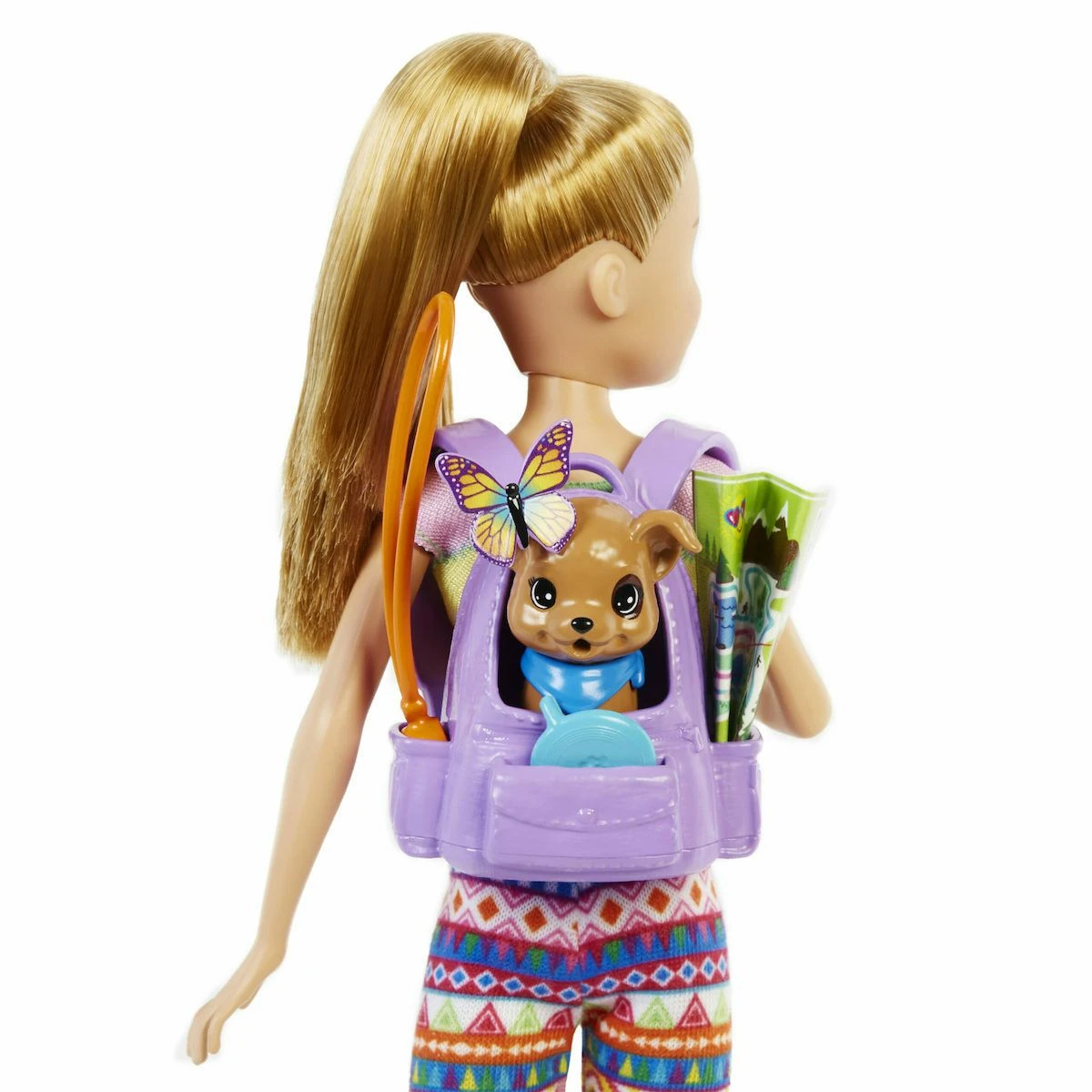 Εμπνεύστε απίθανες περιπέτειες με τις κούκλες και τα σετ από την αγαπημένη σειρά Barbie It Takes Two! Με σπορ εμφάνιση και θεματικά αξεσουάρ αφήγησης, η Barbie και οι φίλες της είναι έτοιμες για το απόλυτο ταξίδι κάμπινγκ. Η Stacie και το σκυλάκι της είναι έτοιμοι να εξερευνήσουν τη φύση με είδη πρώτης ανάγκης για πεζοπορία, μια σκηνή και μία τσάντα μεταφοράς για το σκυλάκι που η Stacie μπορεί να φορέσει σαν σακίδιο! Διακοσμήστε τα αξεσουάρ των ζώων με τα αυτοκόλλητα και ξεκινήστε την πεζοπορία.