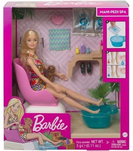 Η Barbie® ξέρει πως για να είσαι καλά πρέπει να φροντίζεις τον εαυτό σου! Με την Barbie Wellness – Ινστιτούτο Μανικιούρ Πεντικιούρ, είναι έτοιμη για την περιποίηση των άκρων της! Το πεντικιούρ τώρα είναι πιο διασκεδαστικό με την ειδική σκόνη, που δημιουργεί μία αίσθηση αλάτων για foot spa. Το μανικιούρ φαίνεται συναρπαστικό, με το ειδικό σφουγγαράκι – τα νύχια της Barbie βάφονται με κρύο νερό και να ξεβάφονται με ζεστό νερό. Η συσκευασία περιλαμβάνει κούκλα Barbie®, λεκάνη πεντικιούρ, 2 σακουλάκια ειδικής σκόνης πεντικιούρ, ειδικό σφουγγαρακί, το αγαπημένο κατοικίδιο της Barbie® και αξεσουάρ spa.