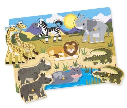 Το παιδί σας θα απολαύσει μια περιπέτεια παζλ όταν τοποθετεί επτά άγρια ??ζώα πάνω από τις αντίστοιχες εικόνες στον πίνακα του παζλ. Αυτό το ανθεκτικό παζλ 7 τεμαχίων διαθέτει μανταλάκια που πιάνονται εύκολα και ξύλινη κατασκευή. Ιδανικό για τη μνήμη, τις λεπτές κινητικές δεξιότητες και τον συντονισμό χεριού-ματιού και ένας συναρπαστικός τρόπος εξοικείωσης με τα ζώα και τον φυσικό κόσμο.