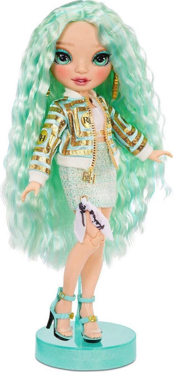 Οι Rainbow High σας καλωσορίζουν στη πιο πολύχρωμη Σχολή Μόδας! Εδώ, όπου οι μαθητές ακολουθούν τα πιο δημιουργικά τους όνειρα και κάθε ένας αντιπροσωπεύει το δικό του χρώμα και μοναδικό στυλ δημιουργώντας όλοι μαζί το πιο μαγικό Ουράνιο Τόξο! Γνώρισε την DAPHNE MINTON! Έχει μοναδικό στυλ και το αγαπημένο της χρώμα είναι η μέντα! Εξάλλου είναι πανέμορφη και το χρώμα αυτό ταιριάζει πολύ και με τα μακριά πλούσια μαλλιά της.