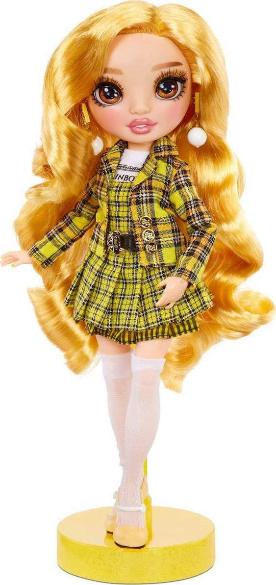 Οι Rainbow High σας καλωσορίζουν στη πιο πολύχρωμη Σχολή Μόδας! Εδώ, όπου οι μαθητές ακολουθούν τα πιο δημιουργικά τους όνειρα και κάθε ένας αντιπροσωπεύει το δικό του χρώμα και μοναδικό στυλ δημιουργώντας όλοι μαζί το πιο μαγικό Ουράνιο Τόξο! Γνώρισε την SHERYL MEYER! Έχει μοναδικό στυλ και το αγαπημένο της χρώμα είναι το χρυσό-κίτρινο! Εξάλλου είναι πανέμορφη και το χρώμα αυτό ταιριάζει πολύ και με τα μακριά πλούσια σε μπούκλες μαλλιά της. Η SHERYL διαθέτει 2 ολοκληρωμένα διαφορετικά σύνολα ένδυσης και πολλά αξεσουάρ στο αγαπημένο της χρώμα για να είναι πάντα in! Ανακάλυψε και τις φίλες της και δες πως όταν τις βάζετε στη σειρά θα ανακαλύψετε όλα τα χρώματα του Ουράνιου Τόξου! Βρες το δικό σου στυλ! Διάλεξε την αγαπημένη σου Rainbow High!