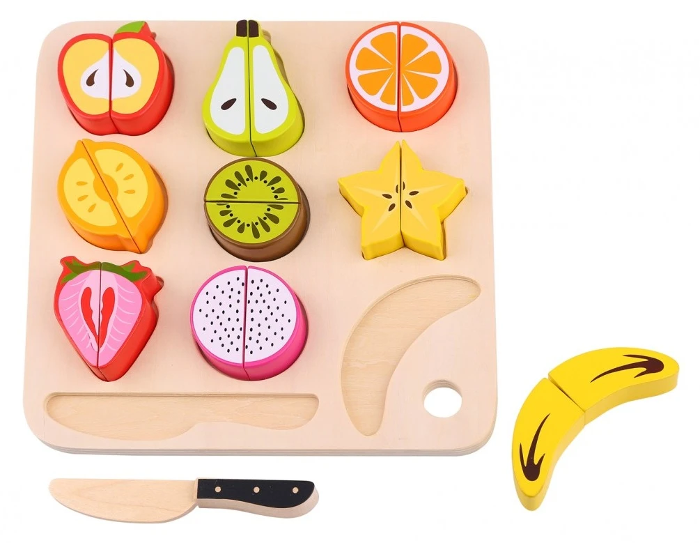 Tooky Toy Ξύλινο Παζλ Σφηνώματα Φρούτα σε Δίσκο Κοπής.
